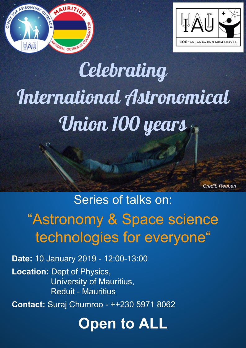 “Astronomy & Space science technologies for everyone”. Come learn cool things and meet Young talented Mauritian Astronomers